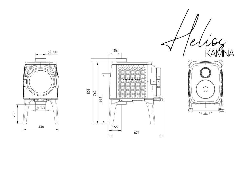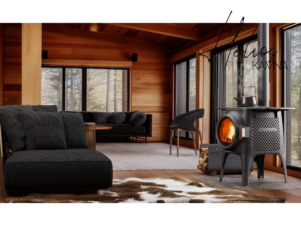 Cloudi je vyrobeno výhradně z litiny – masivní a odolný materiál, precizně vyrobený. Dominantní kulaté okno přitahuje pohled přímo ke hře plamenů. Topeniště je obloženo Keramottem – materiálem speciálně vyvinutým společností Austroflamm pro obzvláště čisté spalování. Dřevěné prvky dodávají kamnům jemný, přírodní nádech.