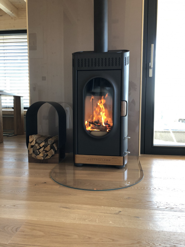 Dodávka a připojení akumulačních krbových kamen Austroflamm Woody Xtra u Zbiroha - březen 2019. Instalace proběhla v dřevostavbě hned po zabydlení zákazníka. Aby kamna mohla stát blíže ke zdi, než předepisují protipožární předpisy, obložil zákazník zadní stěnu za kamny světle lakovaným sklem. Výsledek nás velmi mile překvapil, vypadá to nádherně. Škoda, že fotografie kouzlo tohoto řešení tak dobře nezachytila.